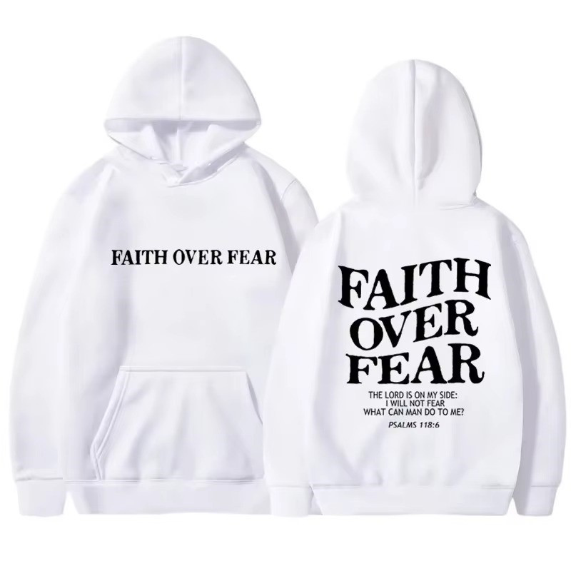 FAITH OVER FEAR Print Hoodies for Men Women Casual Long Sleeve Hooded Sweatshirts Hip Hop Harajuku Hoodie Y2k Men Tops Hoodie