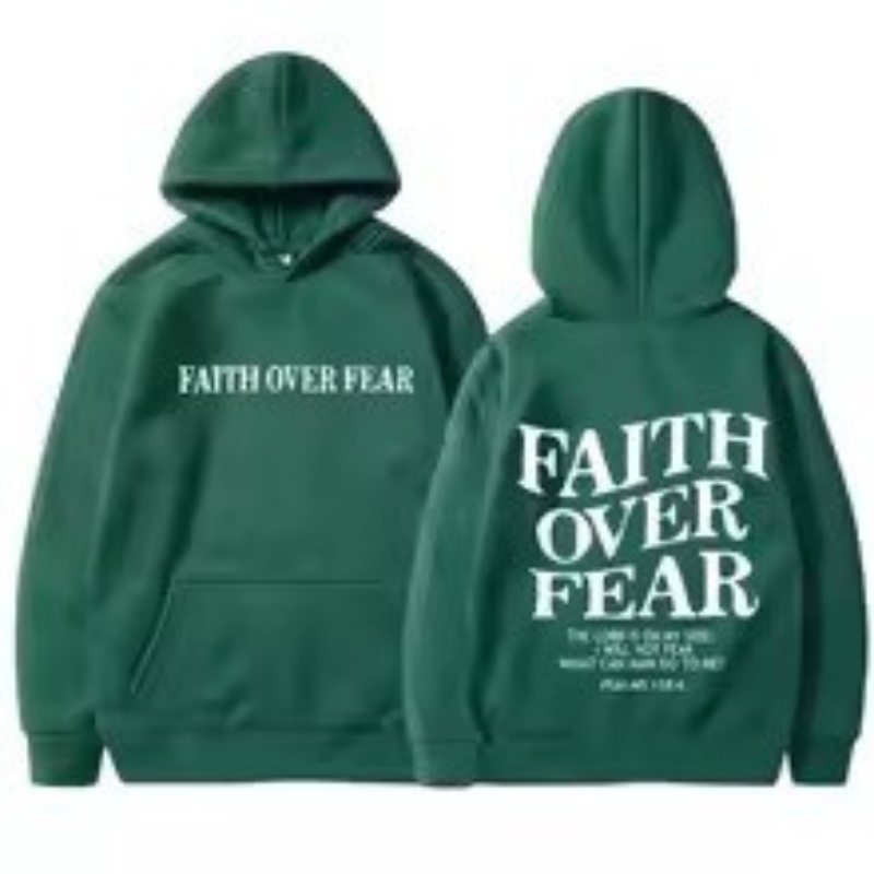 Crafted from soft, breathable, and skin-friendly fabric, this casual long sleeve hooded sweatshirt provides all-day comfort whether you’re out with friends, traveling, attending college, or relaxing at home. The powerful “Faith Over Fear” print on the front makes a strong statement, inspiring confidence and strength while adding a modern streetwear touch to your look.